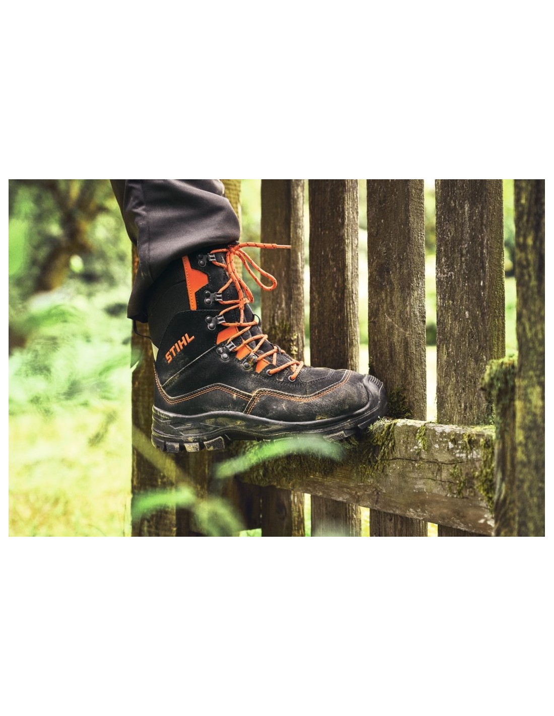 Las botas de motosierra STIHL FUNCTION Active son ideales para uso privado y profesional exigente. Ofrecen un firme apoyo en terrenos no pavimentados gracias a su suela antideslizante y de gran agarre. La entresuela de acero integrada previene perforaciones y lesiones. La parte superior está hecha de cuerode piel de vaca, siendo impermeables, transpirables y cómodas.